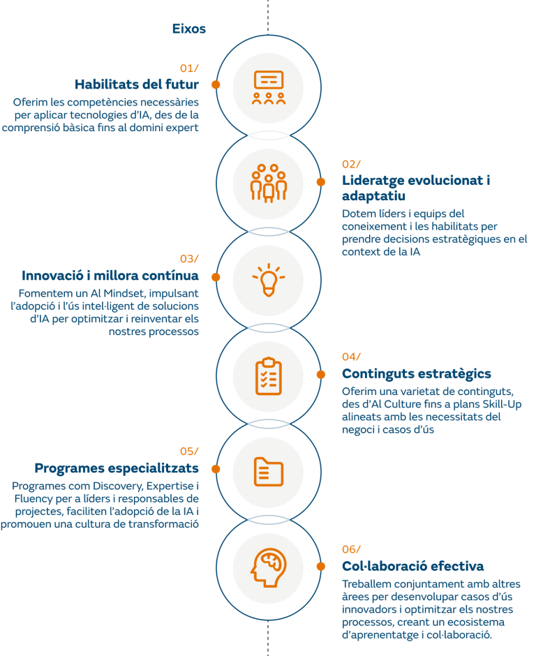 Disposem de tres acadèmies que, de manera complementària, permeten al nostre equip fer front als desafiaments del present i del futur, a través de l’aprenentatge continu, el desenvolupament del rol de lideratge i l’adopció de noves formes de treball