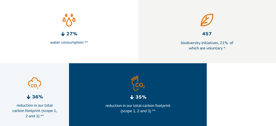 Our environmental governance is the responsibility of our Board of Directors, which supervises the management of environmental risks and opportunities, as well as the evolution of environmental performance by monitoring the main indicators on a monthly and quarterly basis. The facts back us up and our indicators demonstrate our commitment tomanaging the environment responsibly.