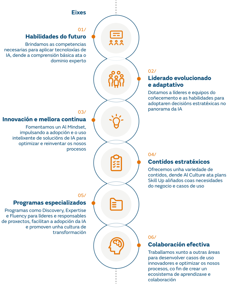 - Escola da IA (intelixencia artificial): É unha panca para impulsar o perfil dixital e preparar os profesionais para os desafíos e oportunidades da IA.