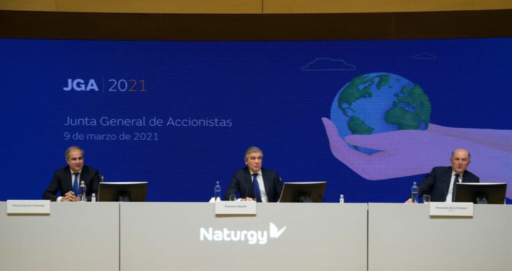El presidente ejecutivo de Naturgy, Francisco Reynés, presidió la Junta General Ordinaria de Accionistas de la compañía, que tuvo lugar hoy en Madrid y que se celebró de manera completamente telemática como consecuencia de las restricciones de movilidad y para preservar las condiciones de seguridad debido al Covid19. Los accionistas aprobaron los resultados y el informe de gestión de la compañía, correspondiente al ejercicio 2020, así como un dividendo complementario de 0,63 €/acción que se abonará el próximo 17 de marzo.