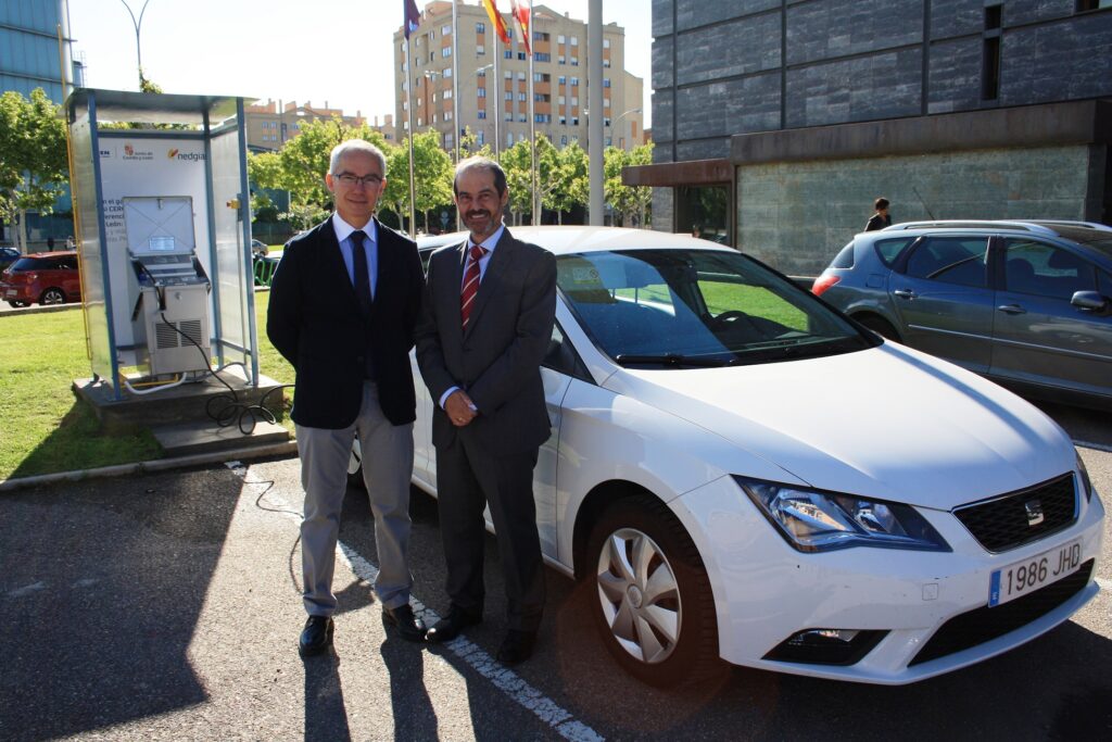 El director general de Energía y Minas de la Junta de Castilla y León, Ricardo González Mantero, y el director general de NEDGIA Castilla y León, Juan Antonio Pazos Arranz, han inaugurado esta mañana la primera estación de carga de gas natural comprimido para uso interno en León con el objetivo de dar servicio al primer vehículo híbrido de gas natural que adquirió hace unos meses el Ente Regional de la Energía de Castilla y León (EREN).
