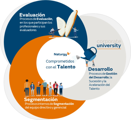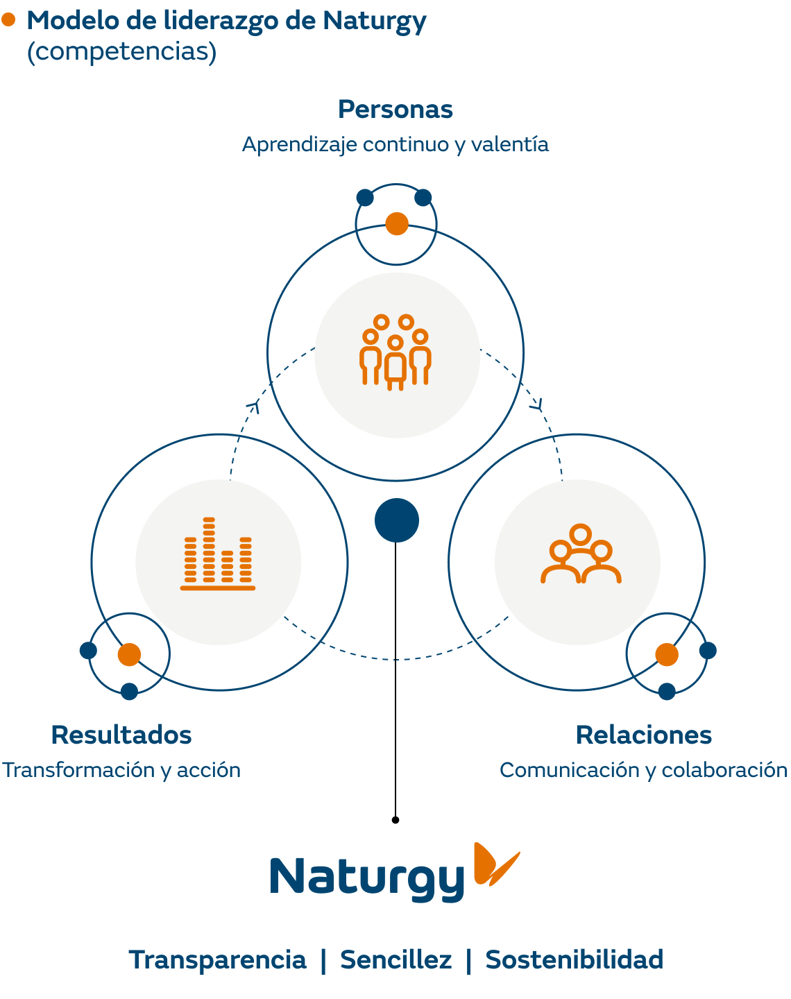 Esta evaluación es uno de los procesos clave dentro del modelo de gestión de talento directivo. A través de una autoevaluación y la valoración del entorno profesional (responsable, pares y colaboradores), cada dos años, contamos con una valoración personalizada de las competencias de nuestros profesionales, además de identificar fortalezas y espacios de mejora. Este elemento de gestión del talento en Naturgy representa una oportunidad profesional muy valiosa para la identificación y fijación de un Objetivo de Desarrollo Anual (ODA) en sintonía con la transformación de la compañía.