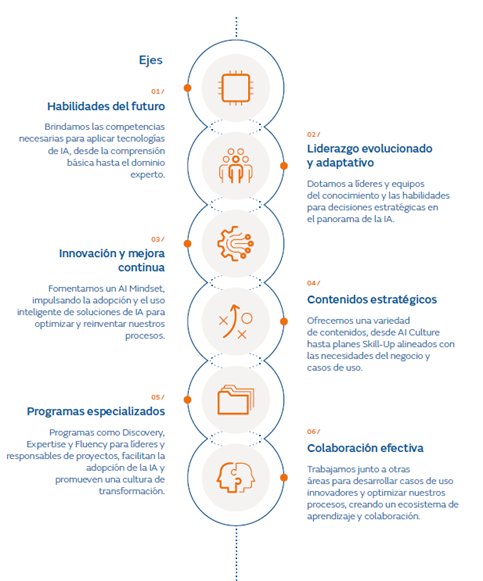 • Escuela de la IA (Inteligencia Artificial): Es una palanca para impulsar el perfil digital y preparar a los profesionales para los desafíos y oportunidades de la IA.