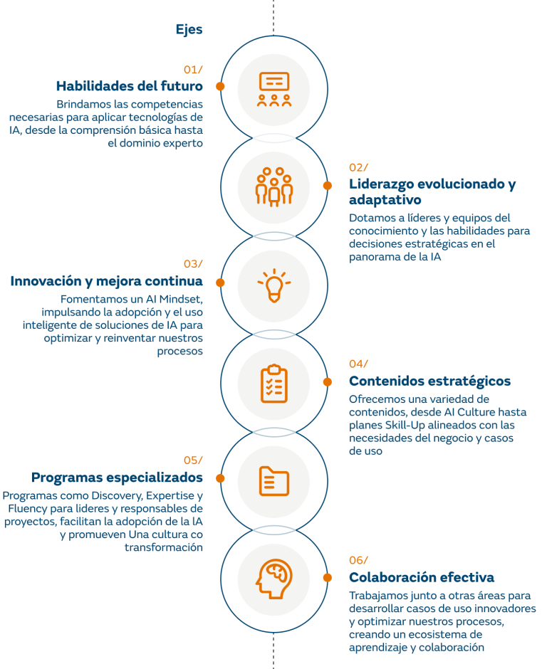 - Escuela de la IA (Inteligencia Artificial): Es una palanca para impulsar el perfil digital y preparar a los profesionales para los desafíos y oportunidades de la IA.