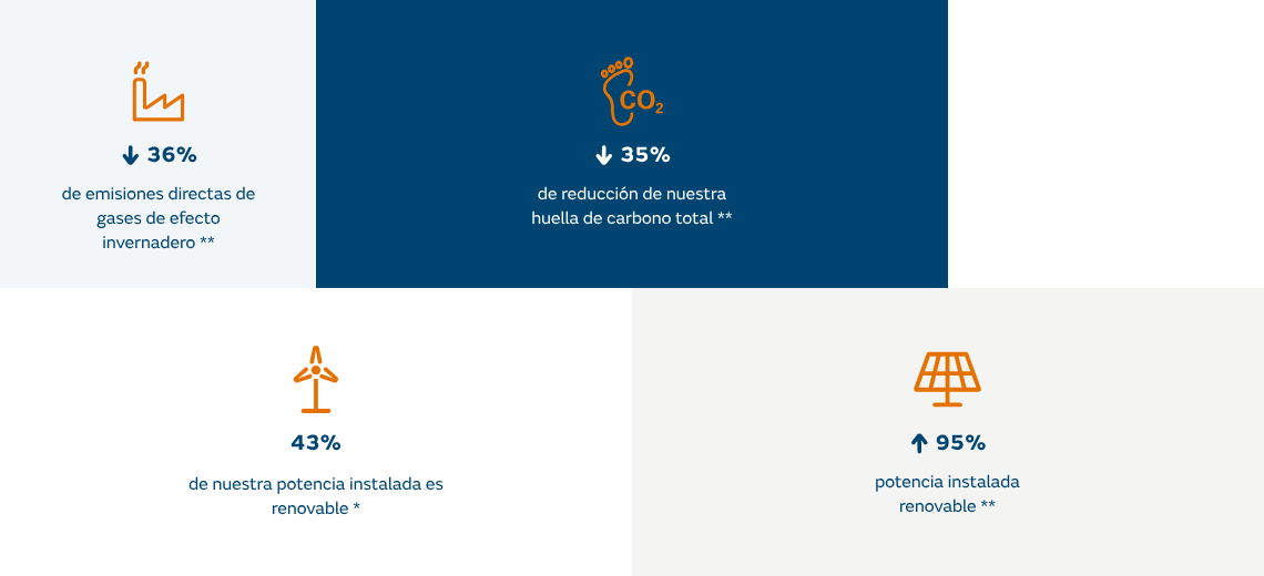 - Construimos nuevos proyectos de generación de electricidad renovable para cumplir conseguir una potencia renovable instalada entorno al 50% en 2025.